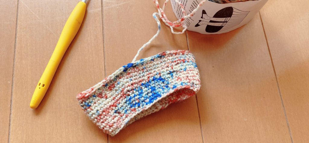 今回はスパイラルソックスの編み方(ぐるぐる編むだけでいい感じのゴム感のある円になる編み方で作りました。