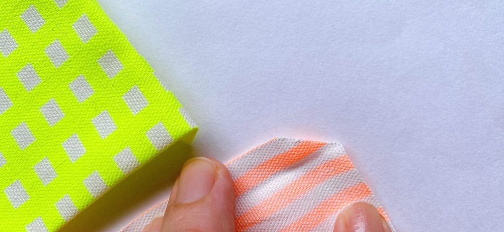 ❹裏布を同じ大きさに切って、の角を折り込みアイロンをかけて